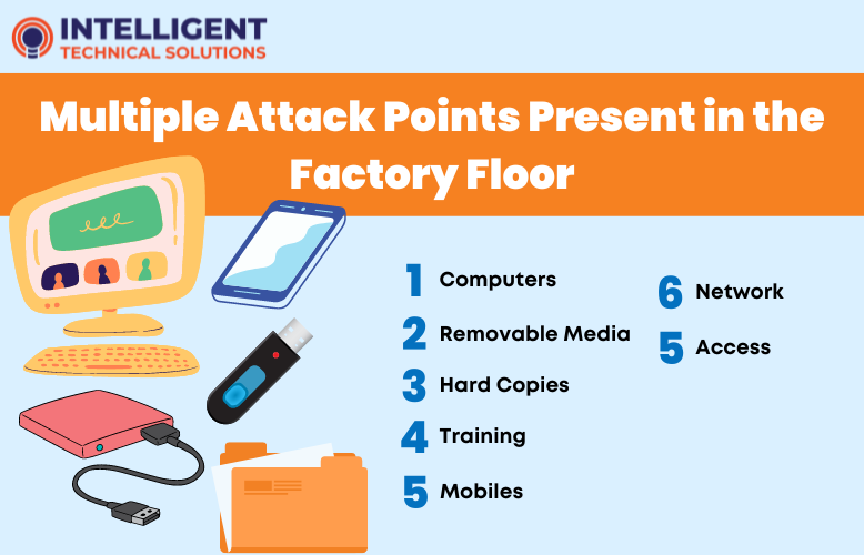 Multiple attack points exist in today's factor floor that didn't exist in previous years. Manufacturers need to adapt and evaluate the following parts of a factory floor: